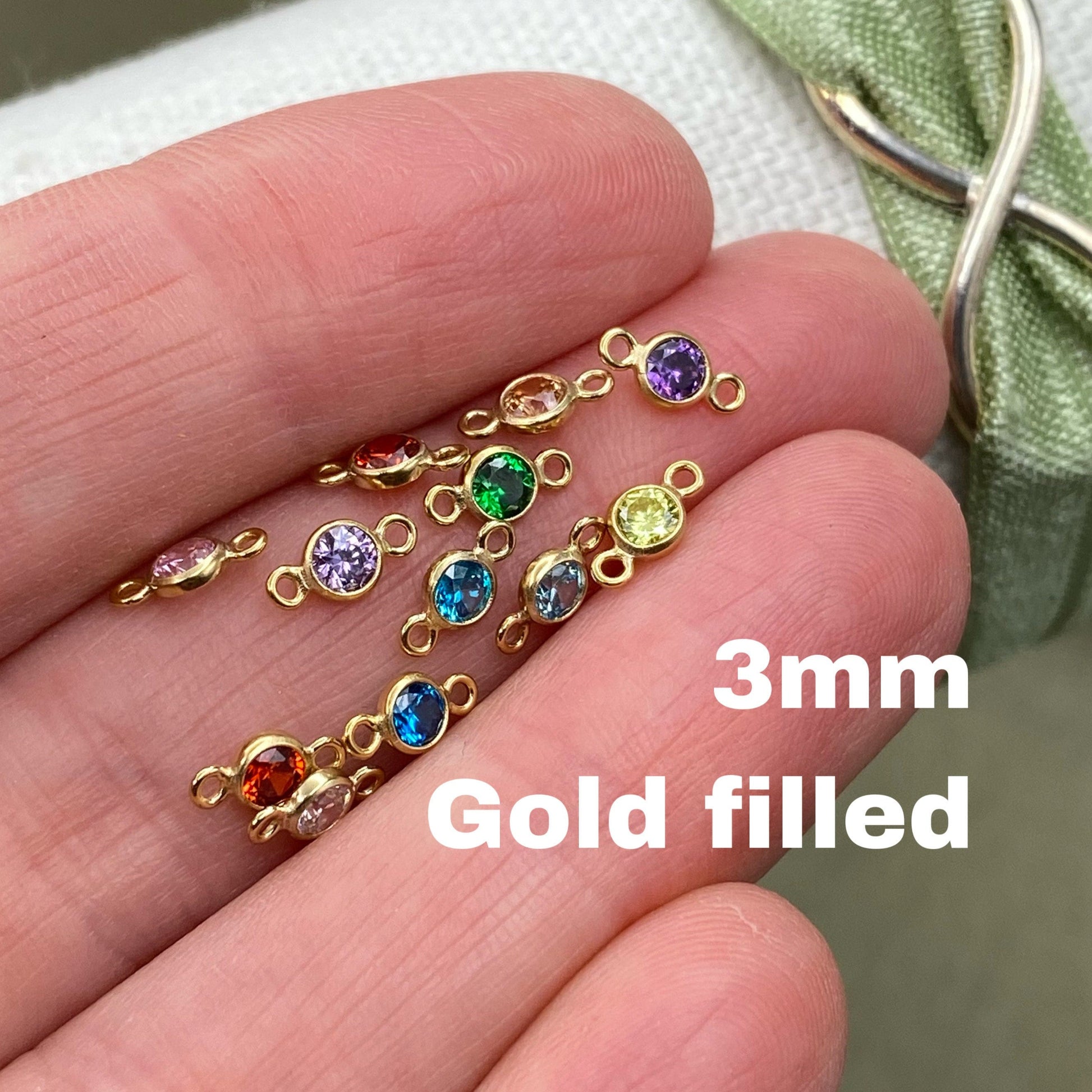 3mm Birthstone Connectors - Gold Filled - B1G - OG Colors