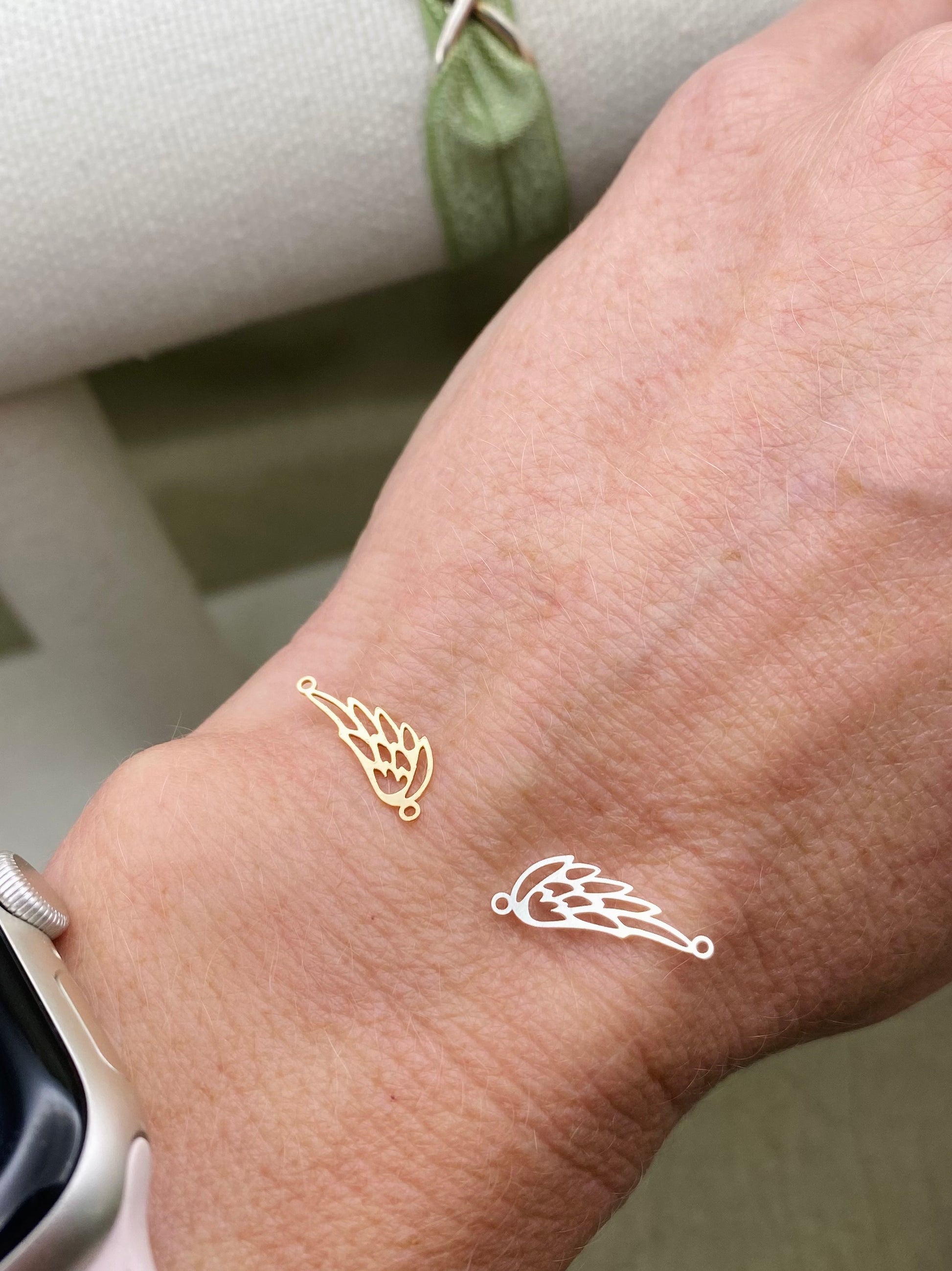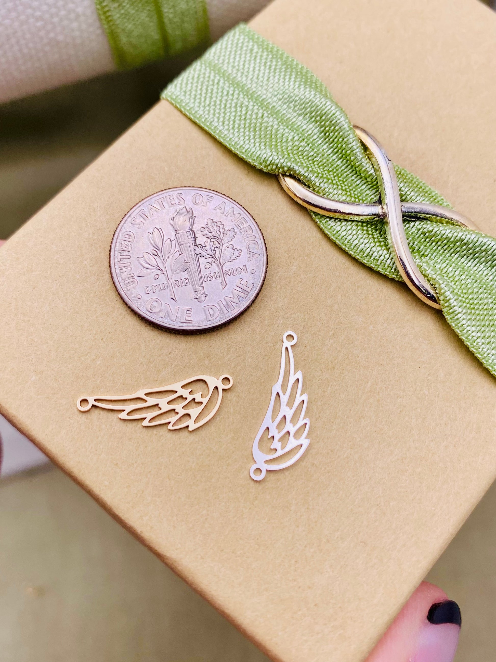 These Angel Wing links are the perfect size for using as a connector for permanent jewelry chains.