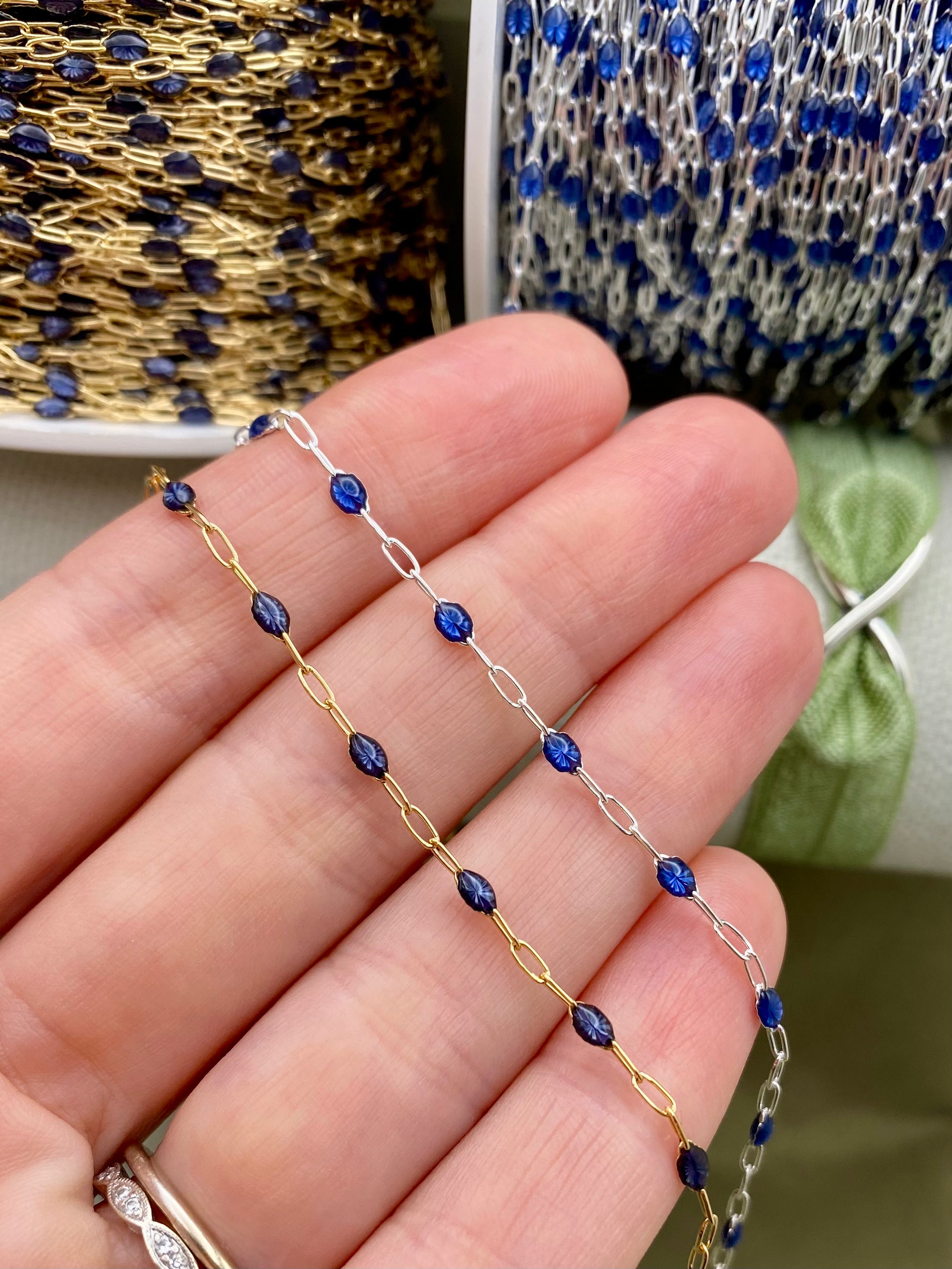 Cobalt Blue Enamel Chain - Sunburst - E26