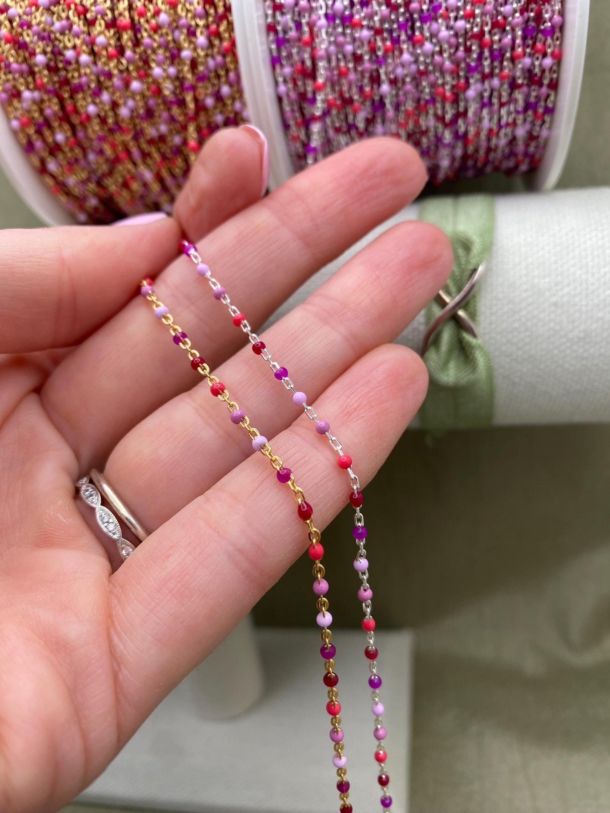 Our Cupcake chain features 5 Colors: Translucent Red & Fuchsia, Solid Coral, Purple & Lavender