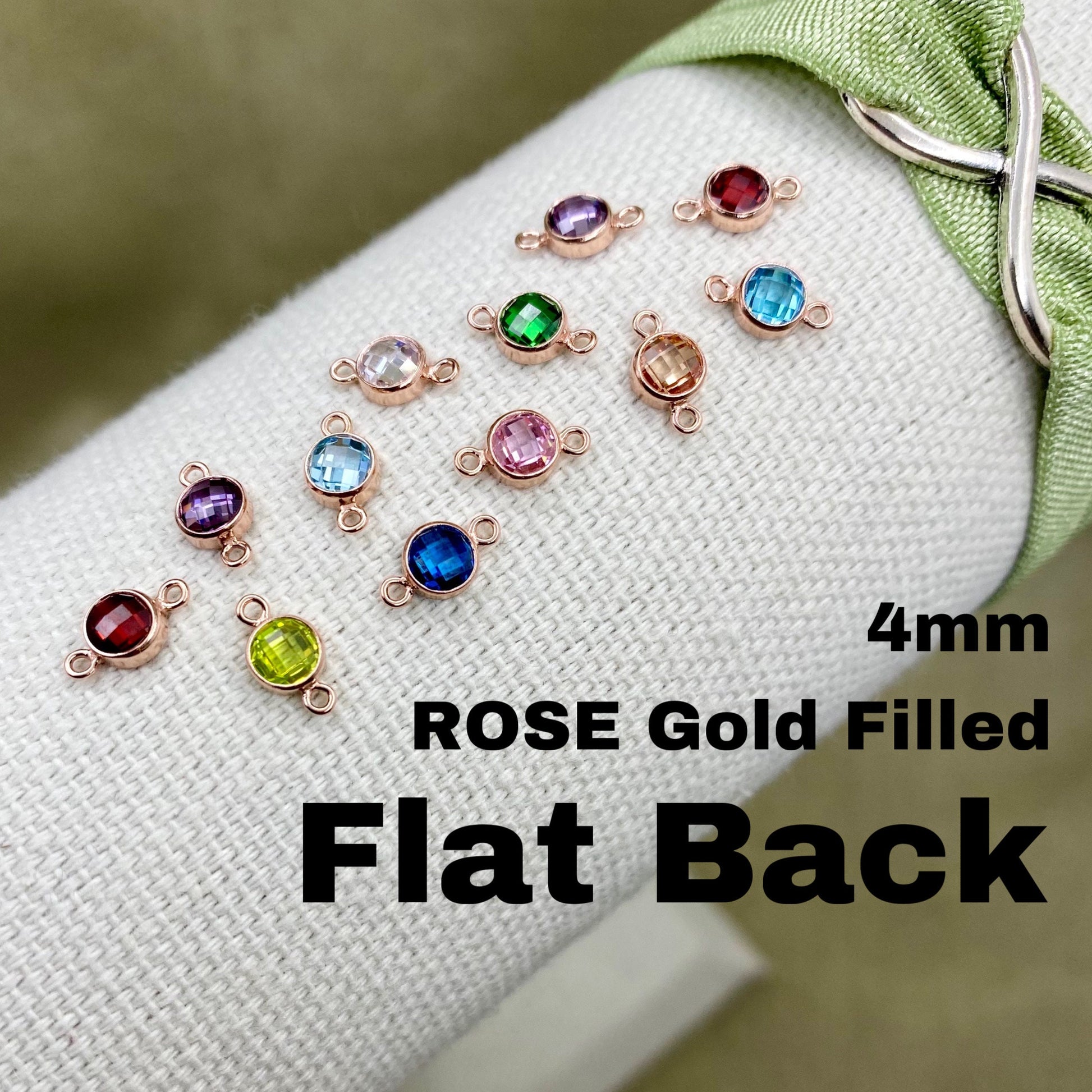Flatback Birthstone Connectors 4mm - Rose Gold Filled - B4R - OG Colors