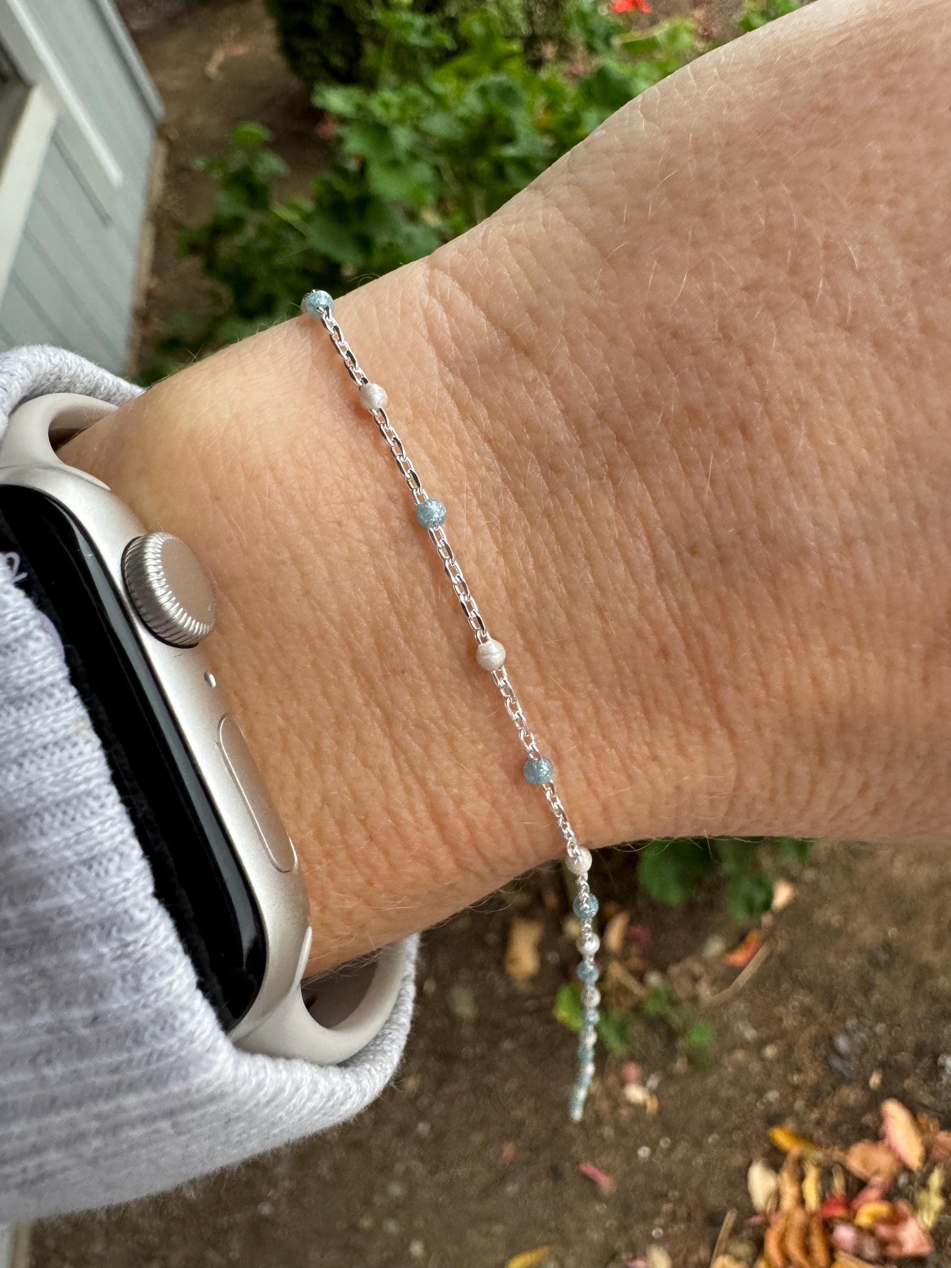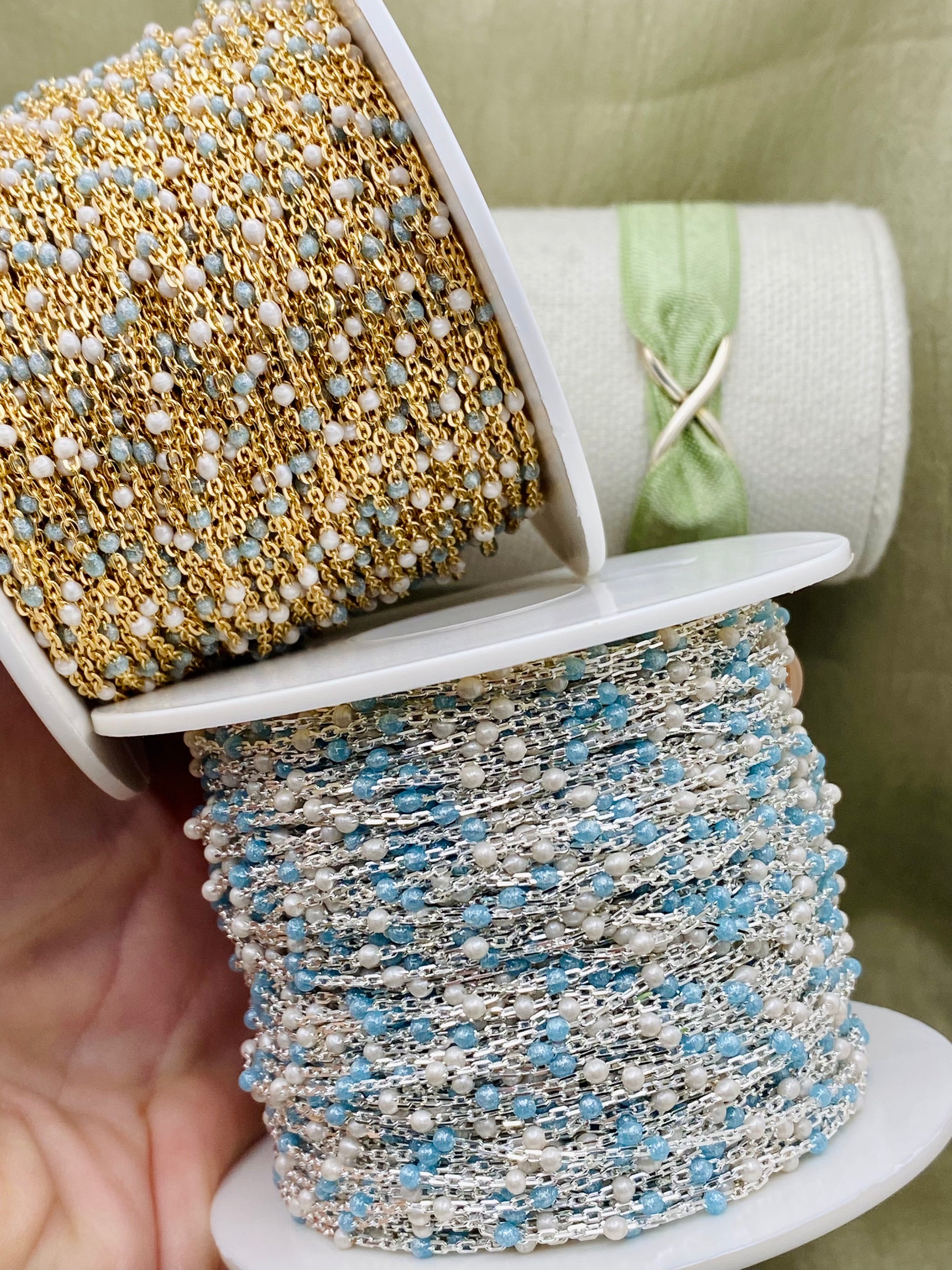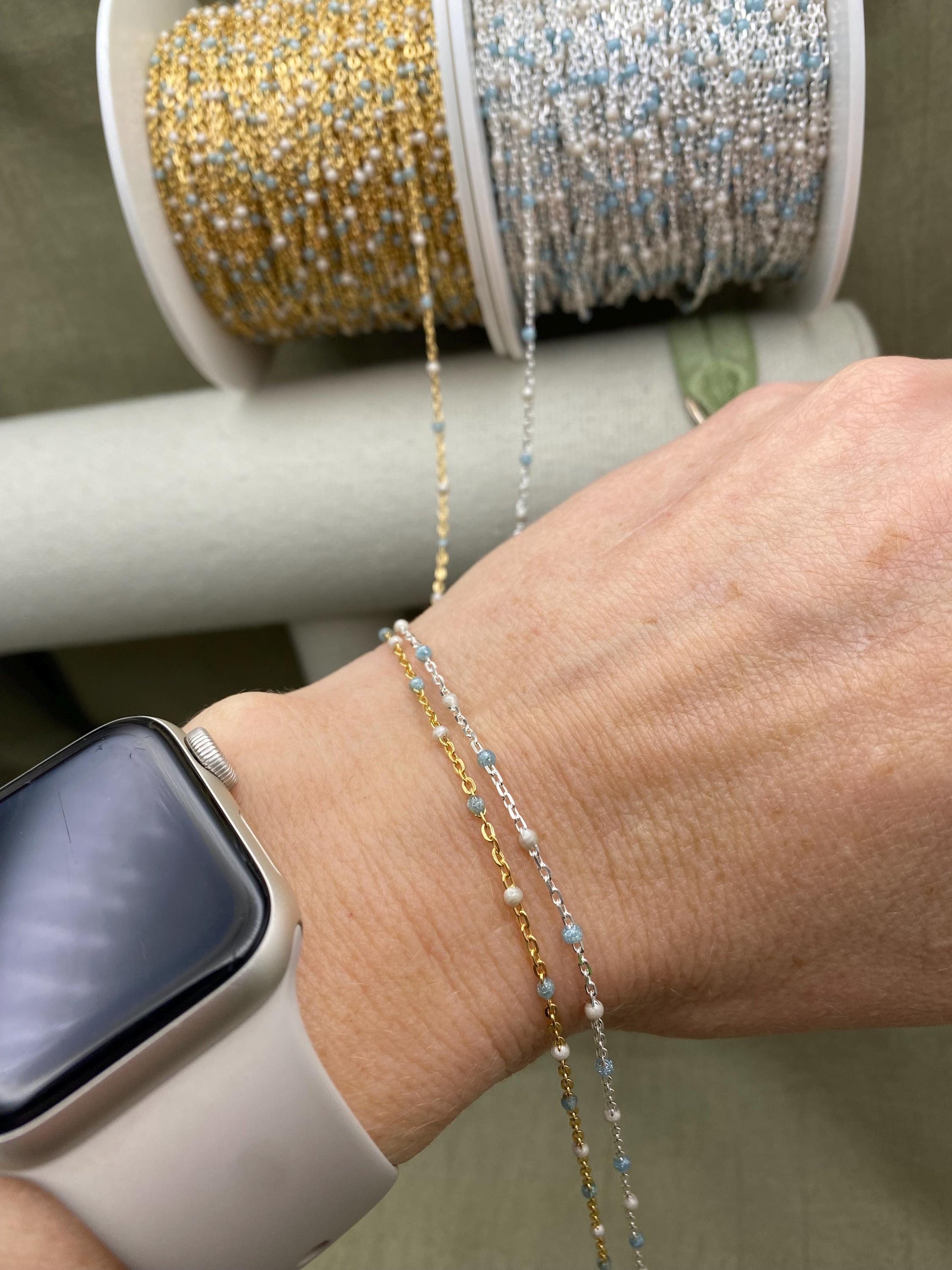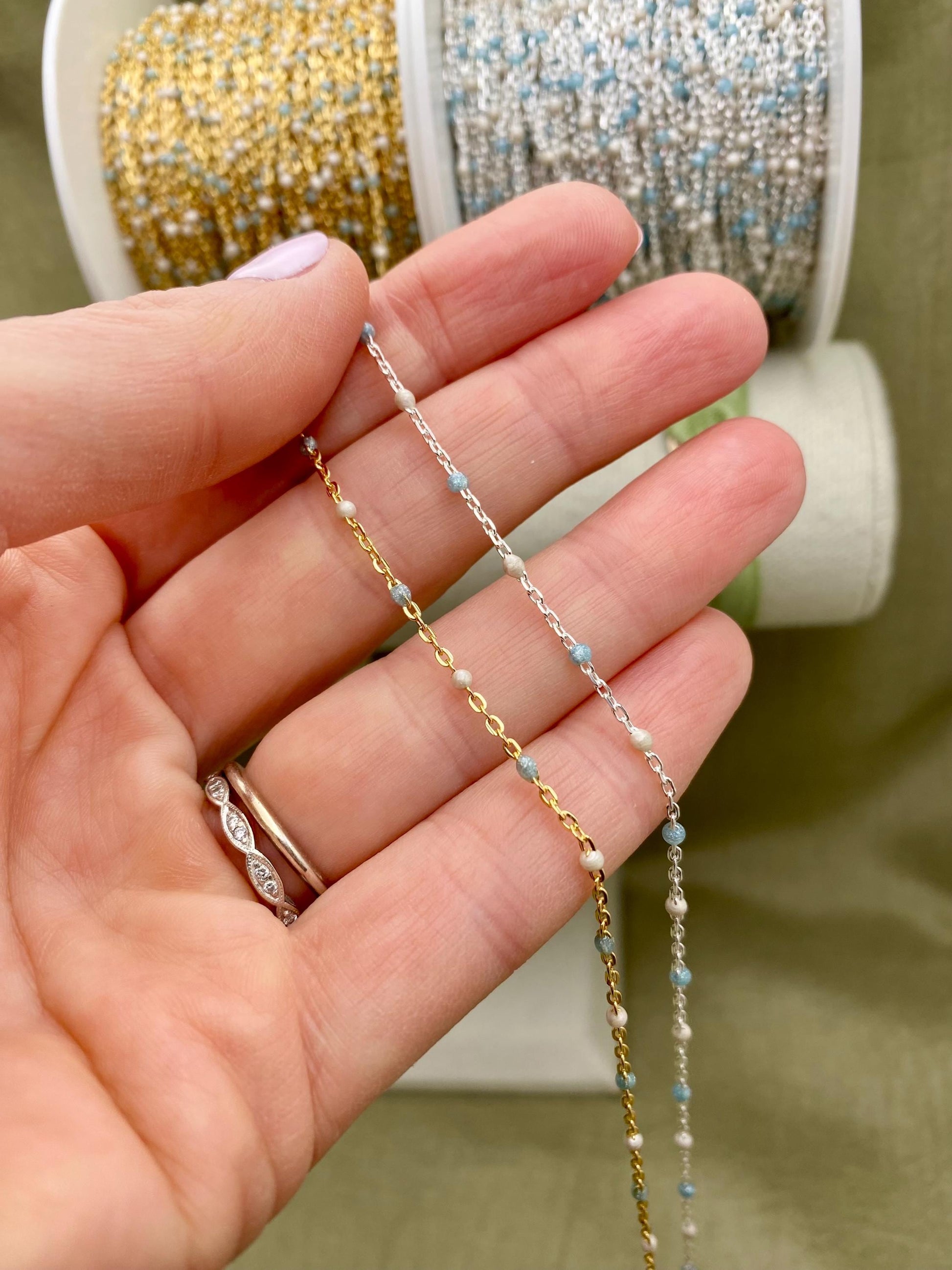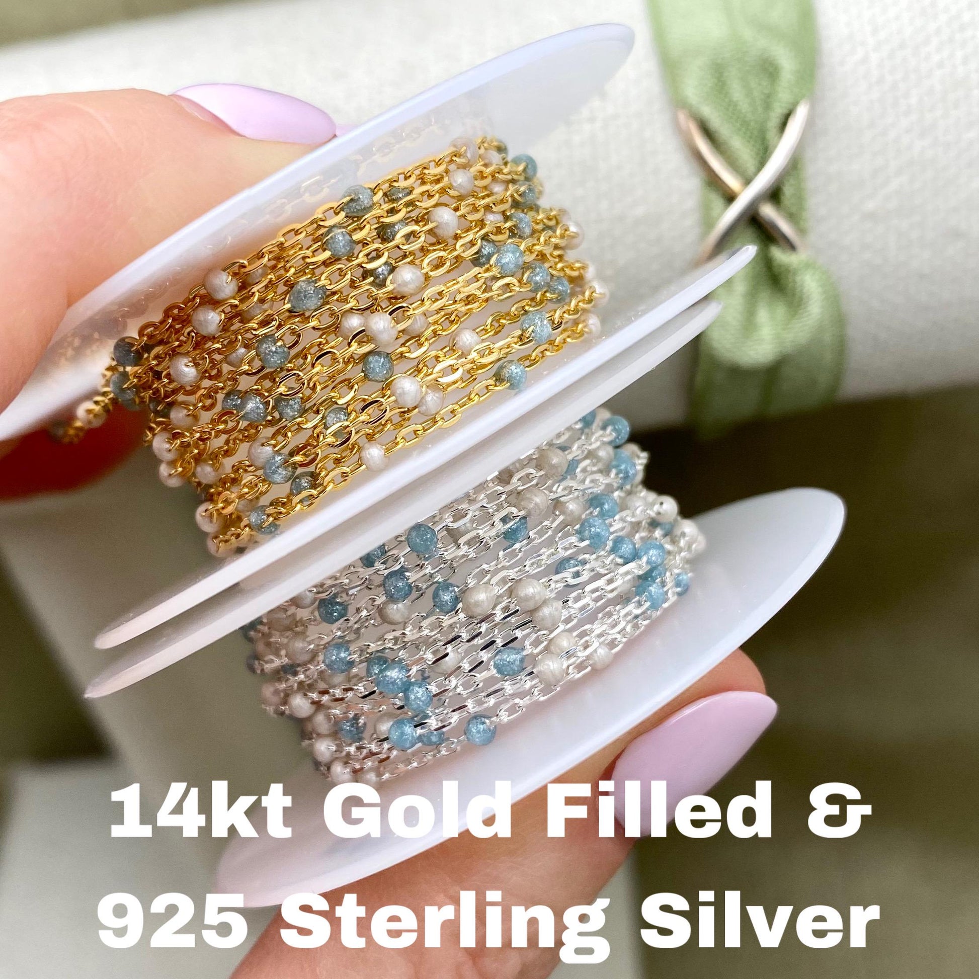 Our Ice Queen chain features 2 Colors: Pearl White & Glitter Blue