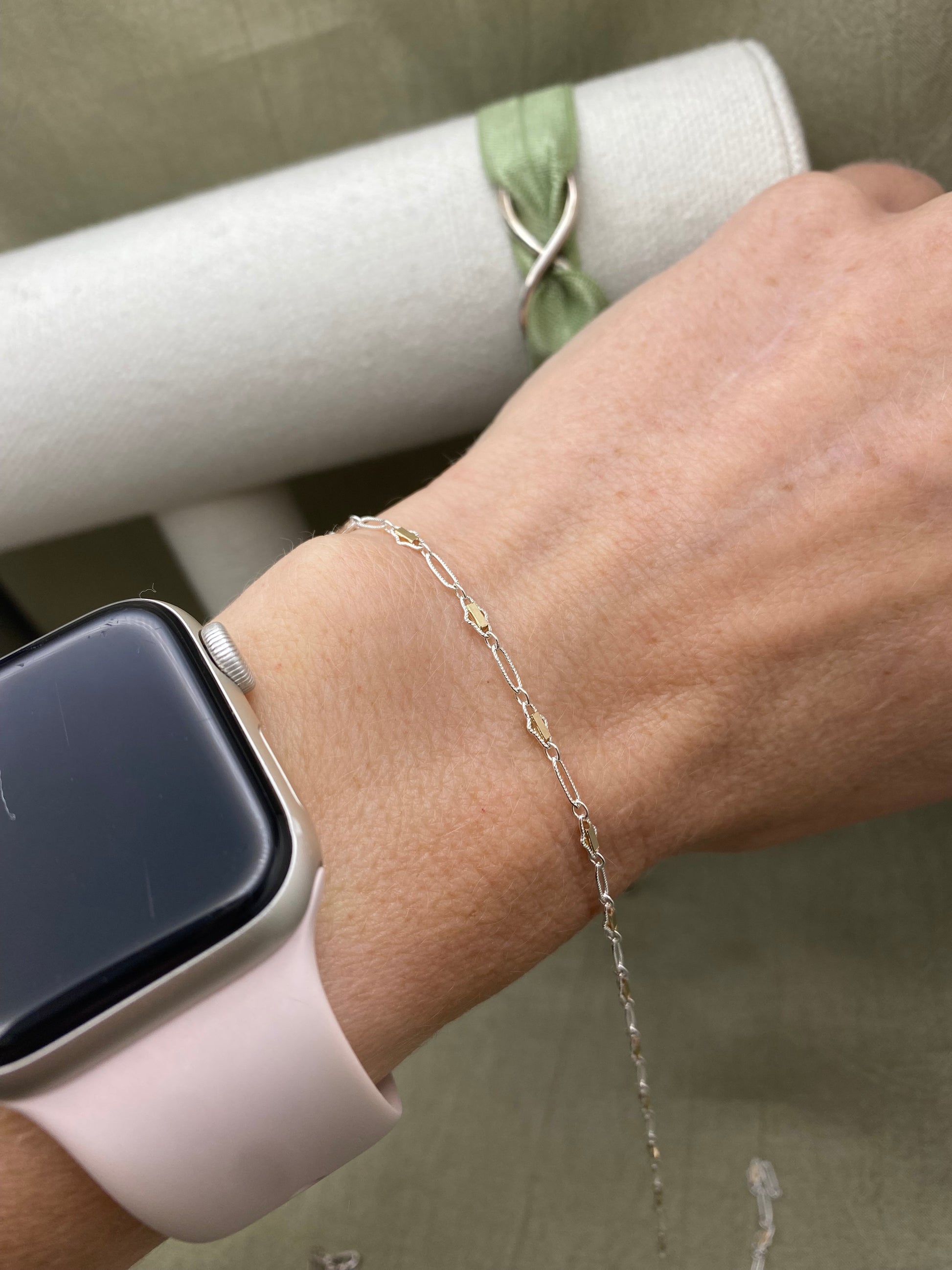 925 Sterling Silver chain with 14kt Gold Filled bars within the links