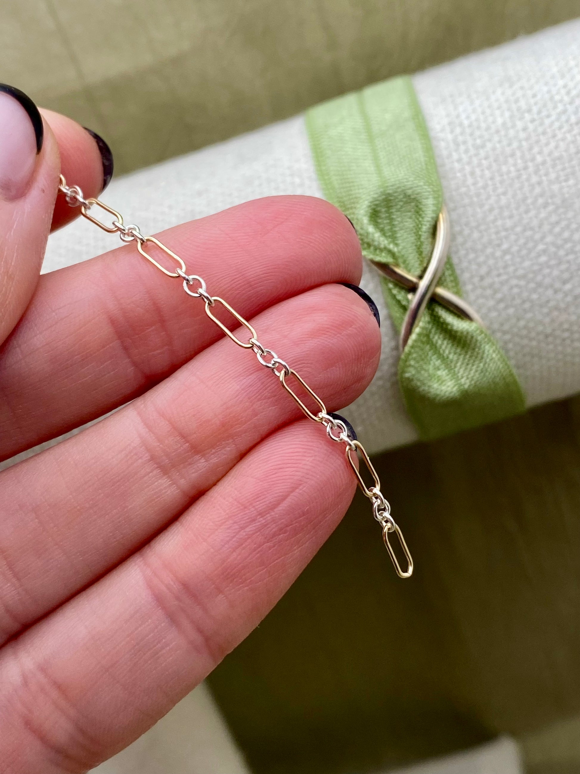 Why choose between silver or gold filled when you can have both with this gorgeous textures mixed long and short chain!