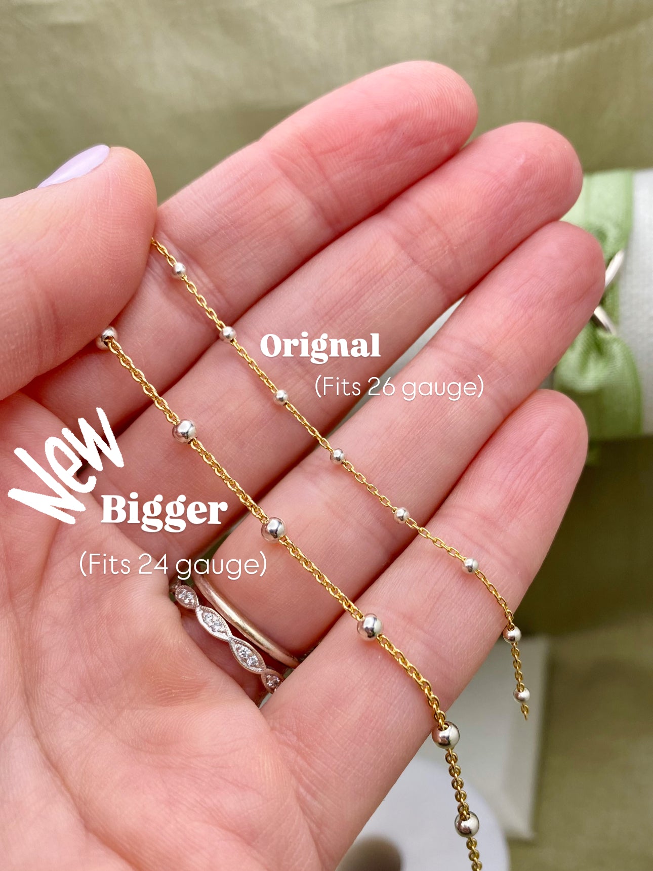 Your favorite mixed metal chain is now more user friendly, this bigger style fits a 24 gauge jumpring.