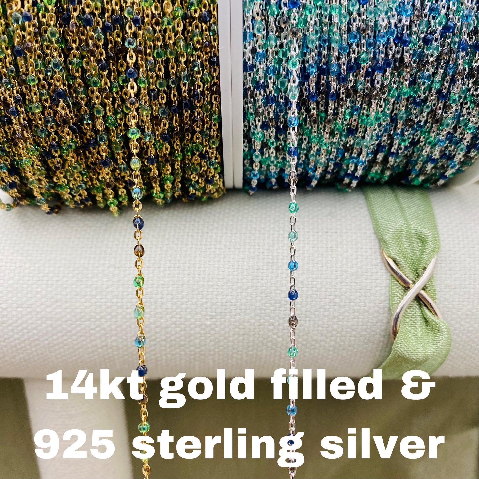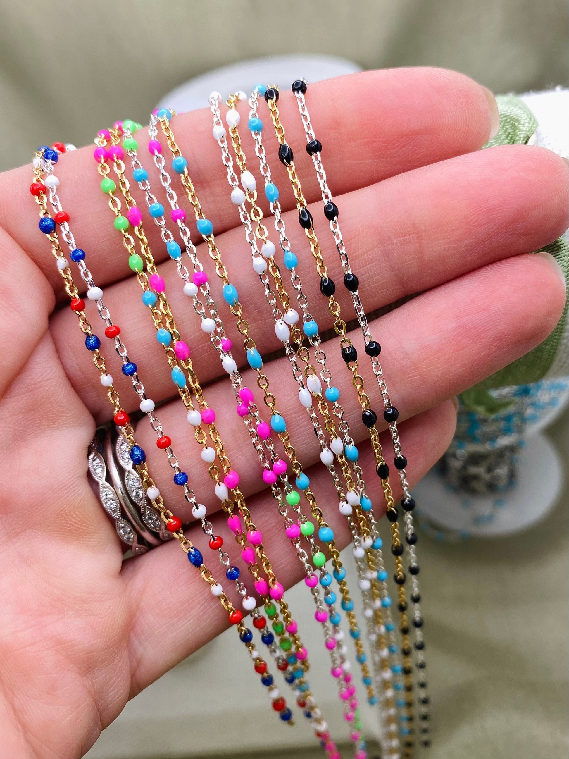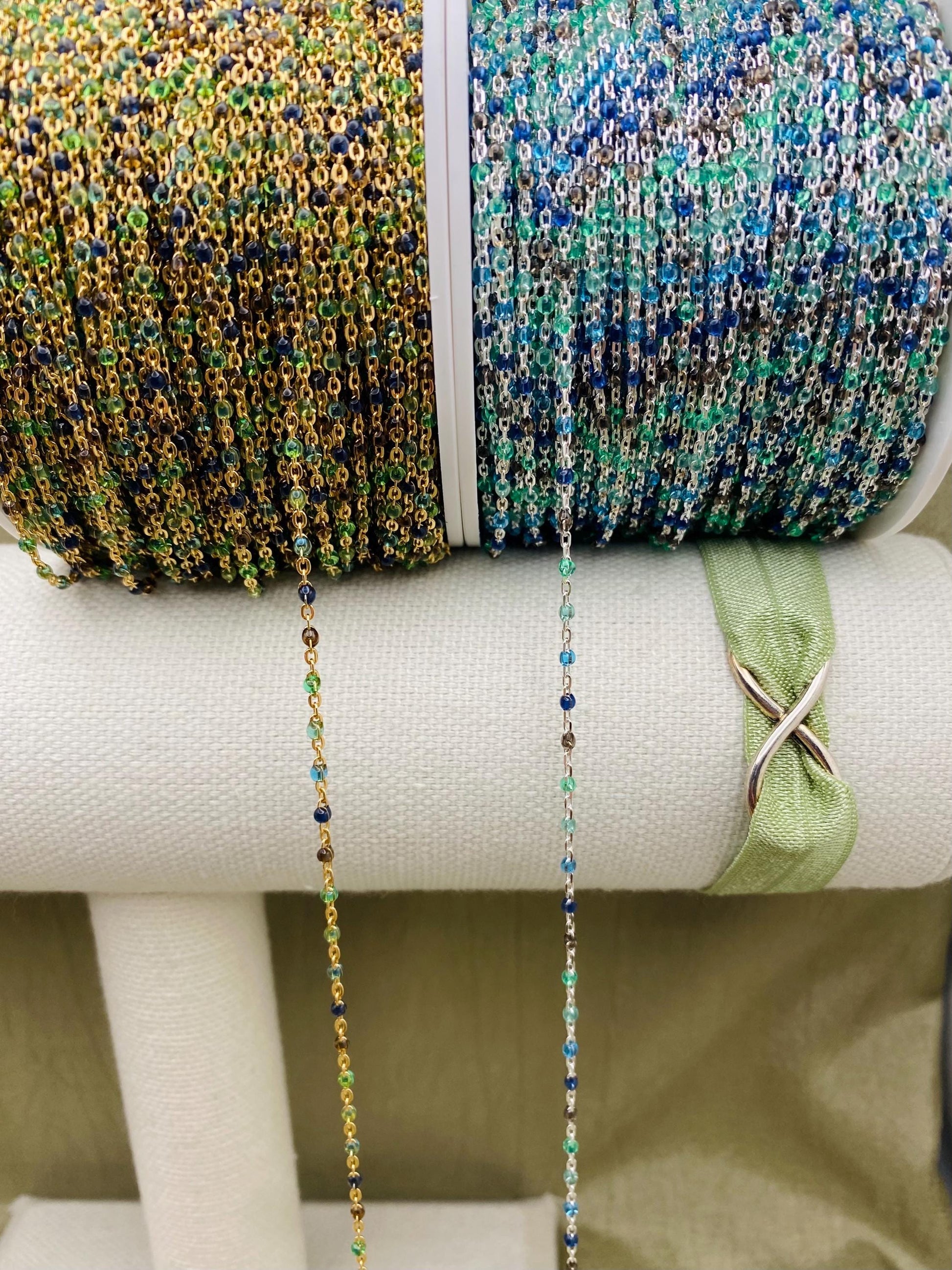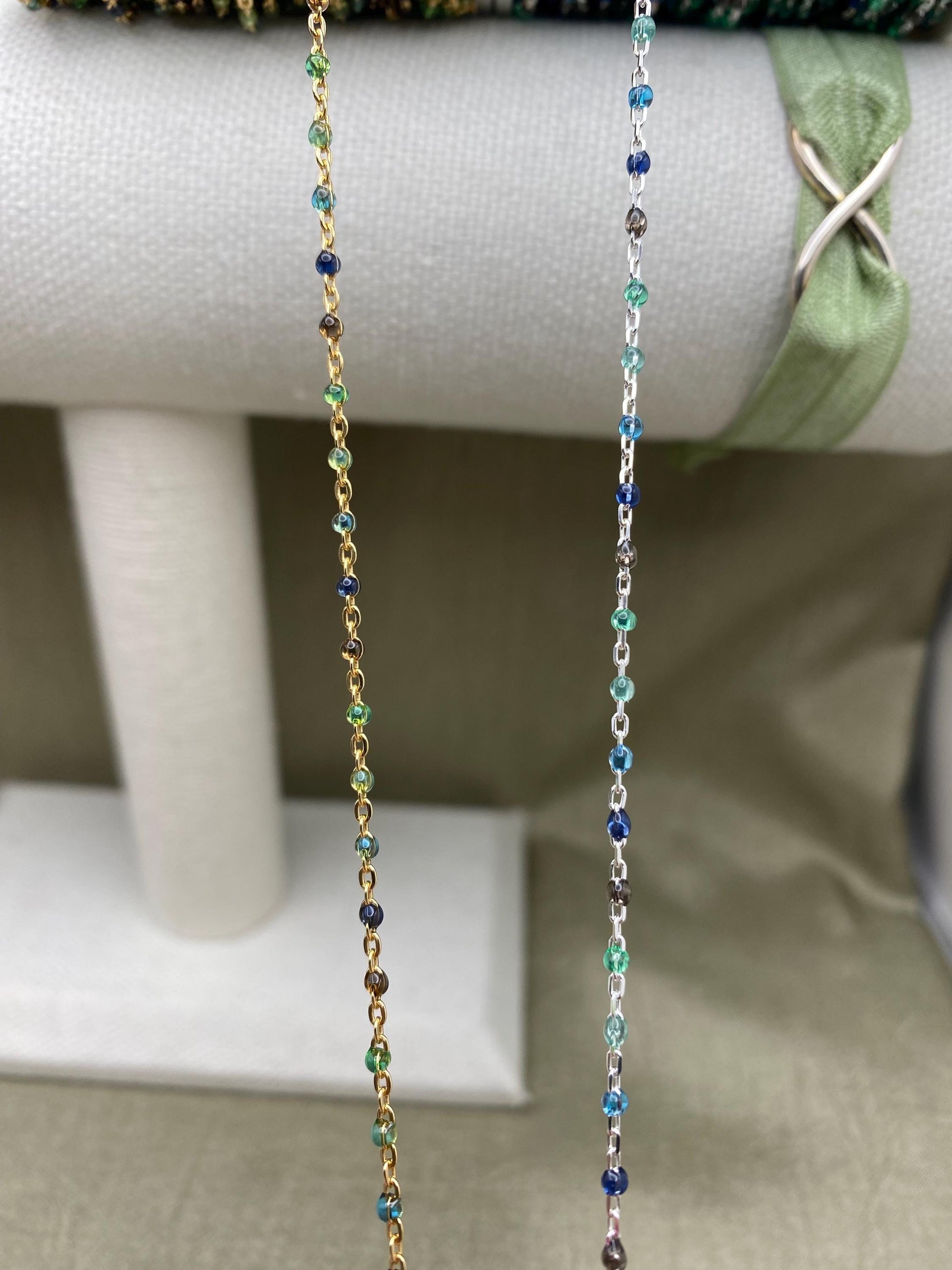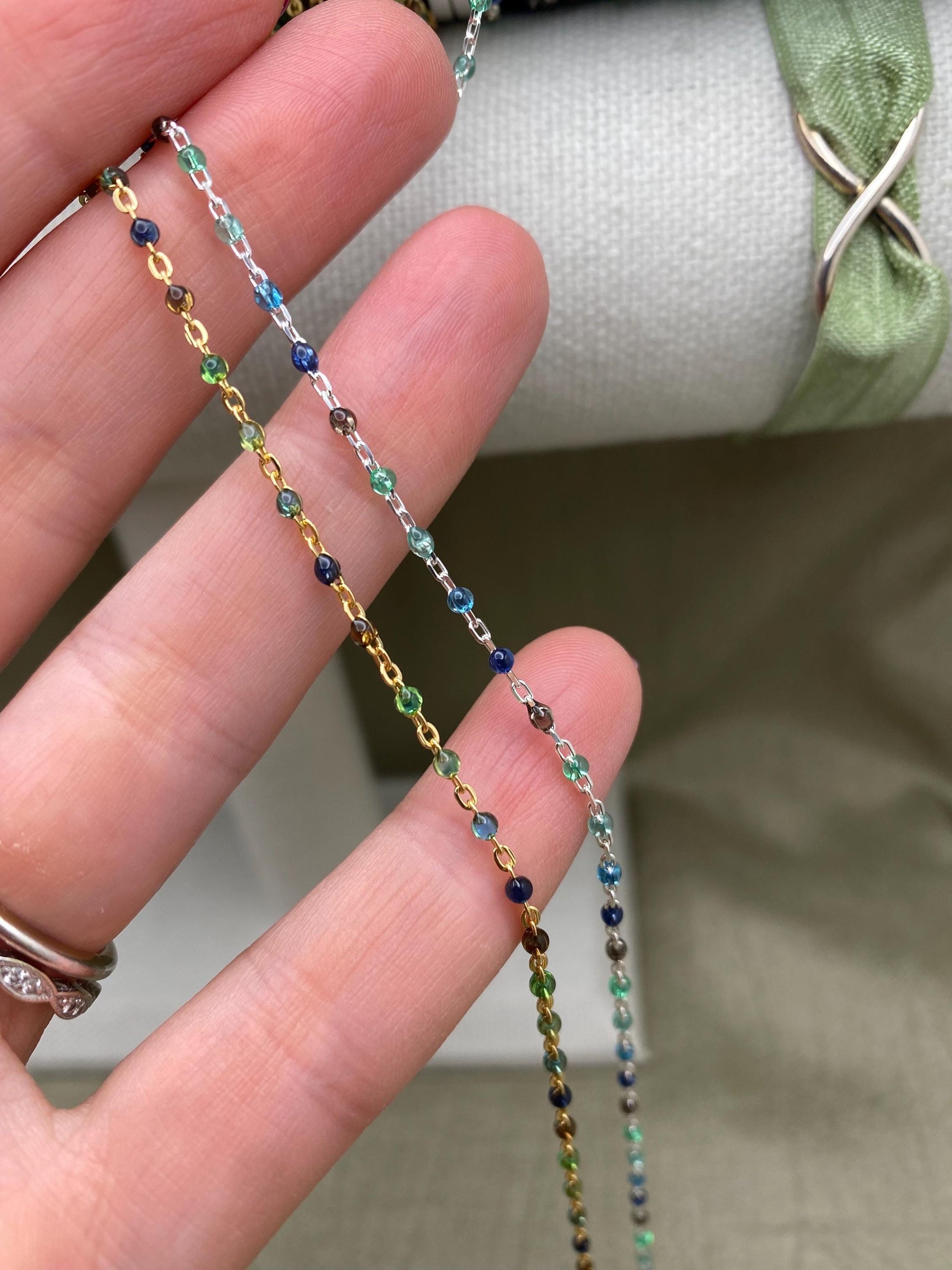 Our Ocean chain features 5 Transparent Colors: Green, Sea foam, Blue, Cobalt, Black