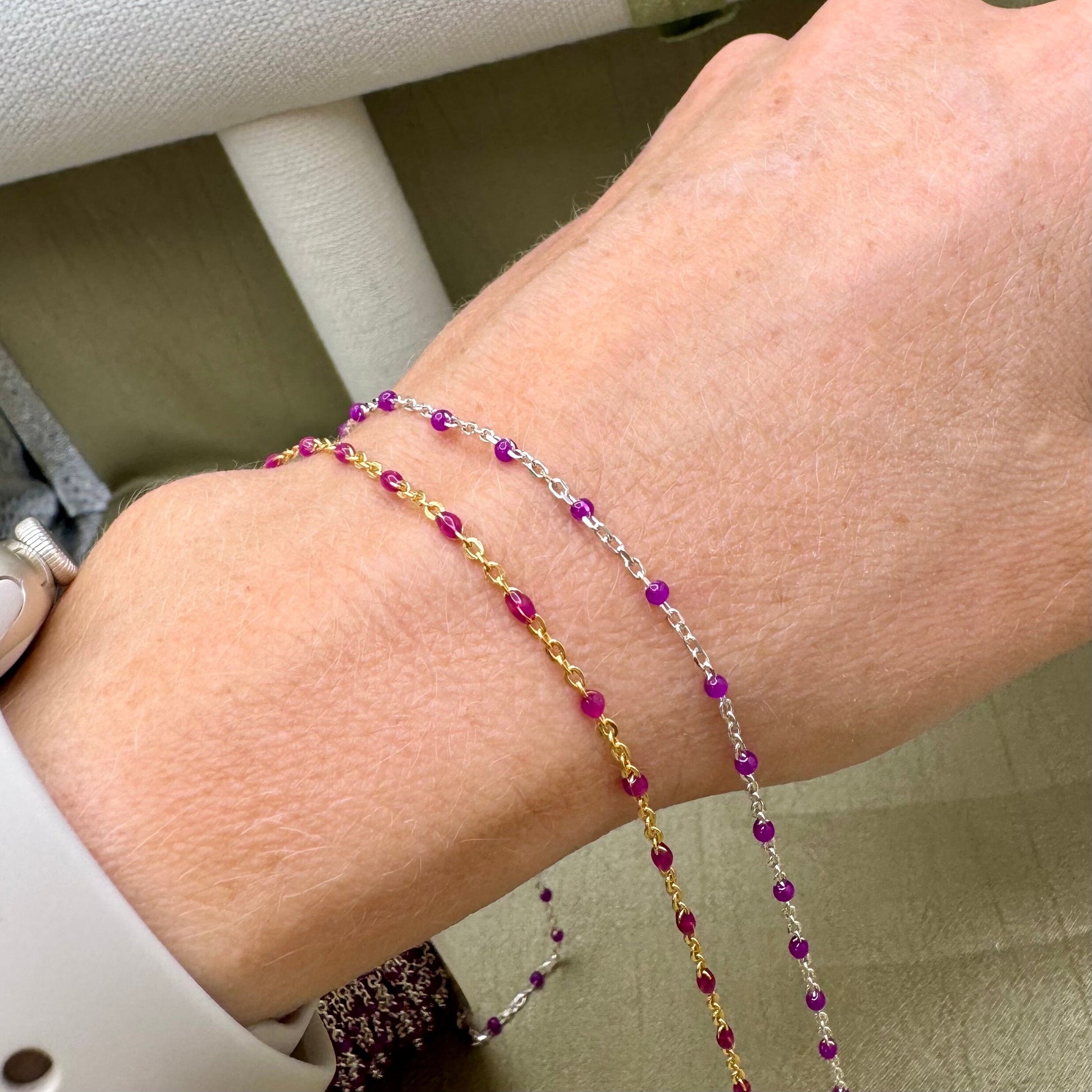 Fuchsia Purple Enamel Chain - Dot Cable - E5