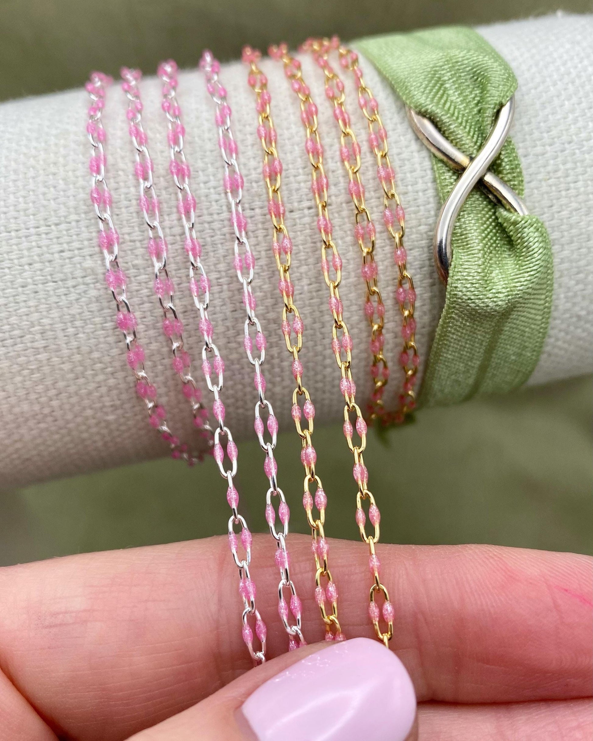 Glitter Pink Enamel Chain - Twin Paperclip - E13