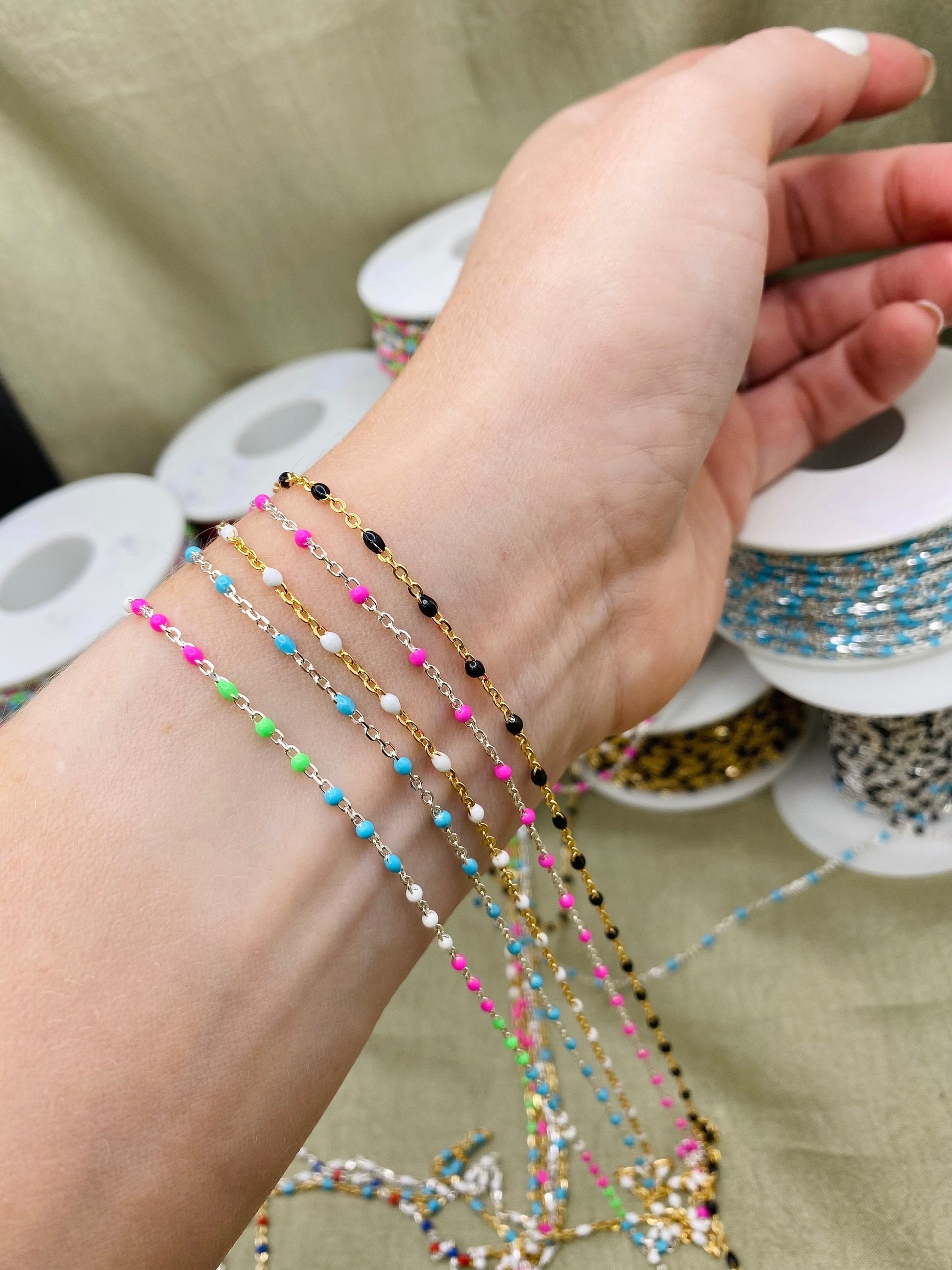 Premium quality enamel on real American standard 14kt gold filled or 925 Sterling Silver cable chain.