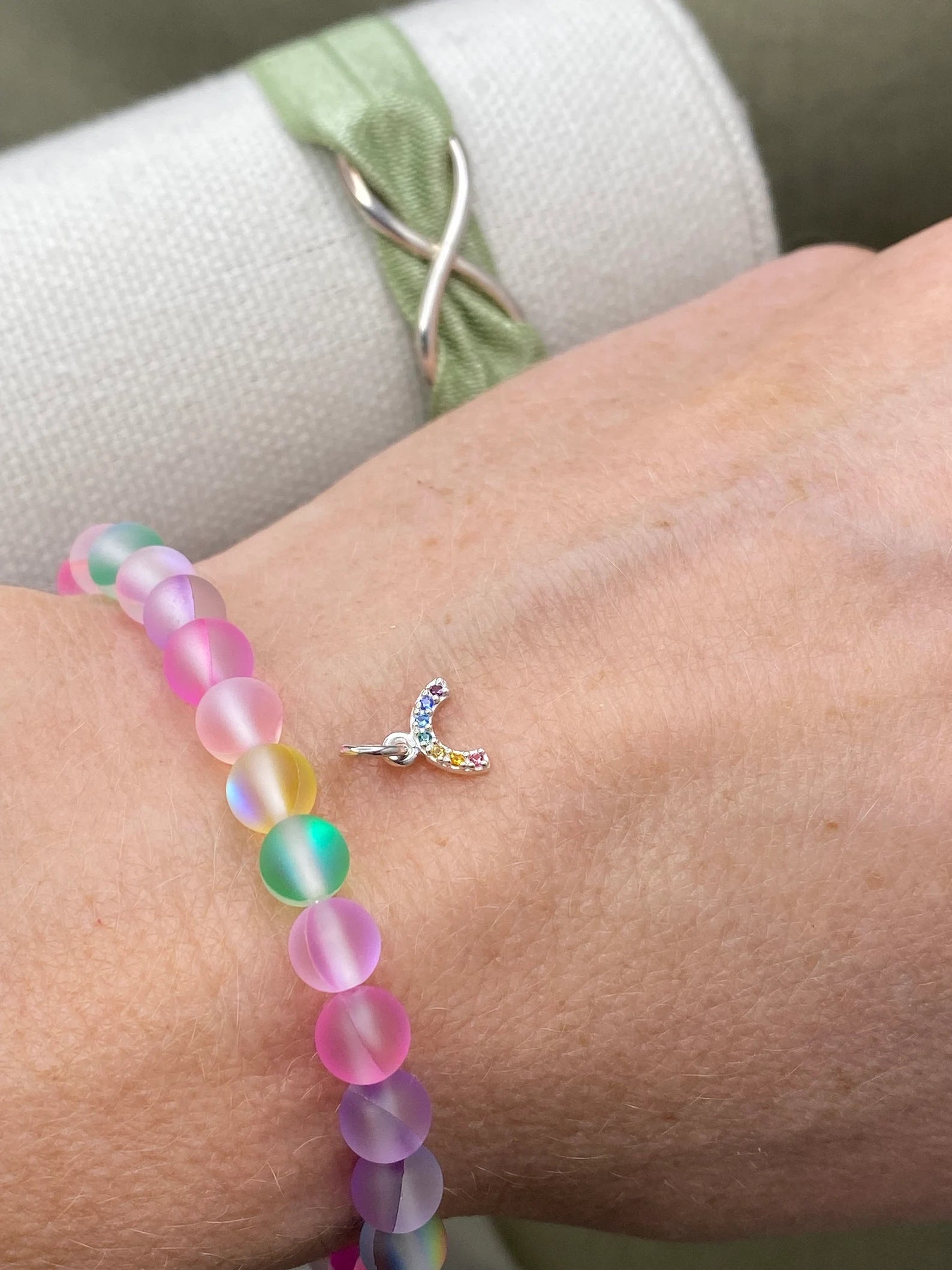 Wow, this rainbow charm is so dainty and sweet. Ordered for a friend who miscarried, and it is the most special touch to her bracelet!