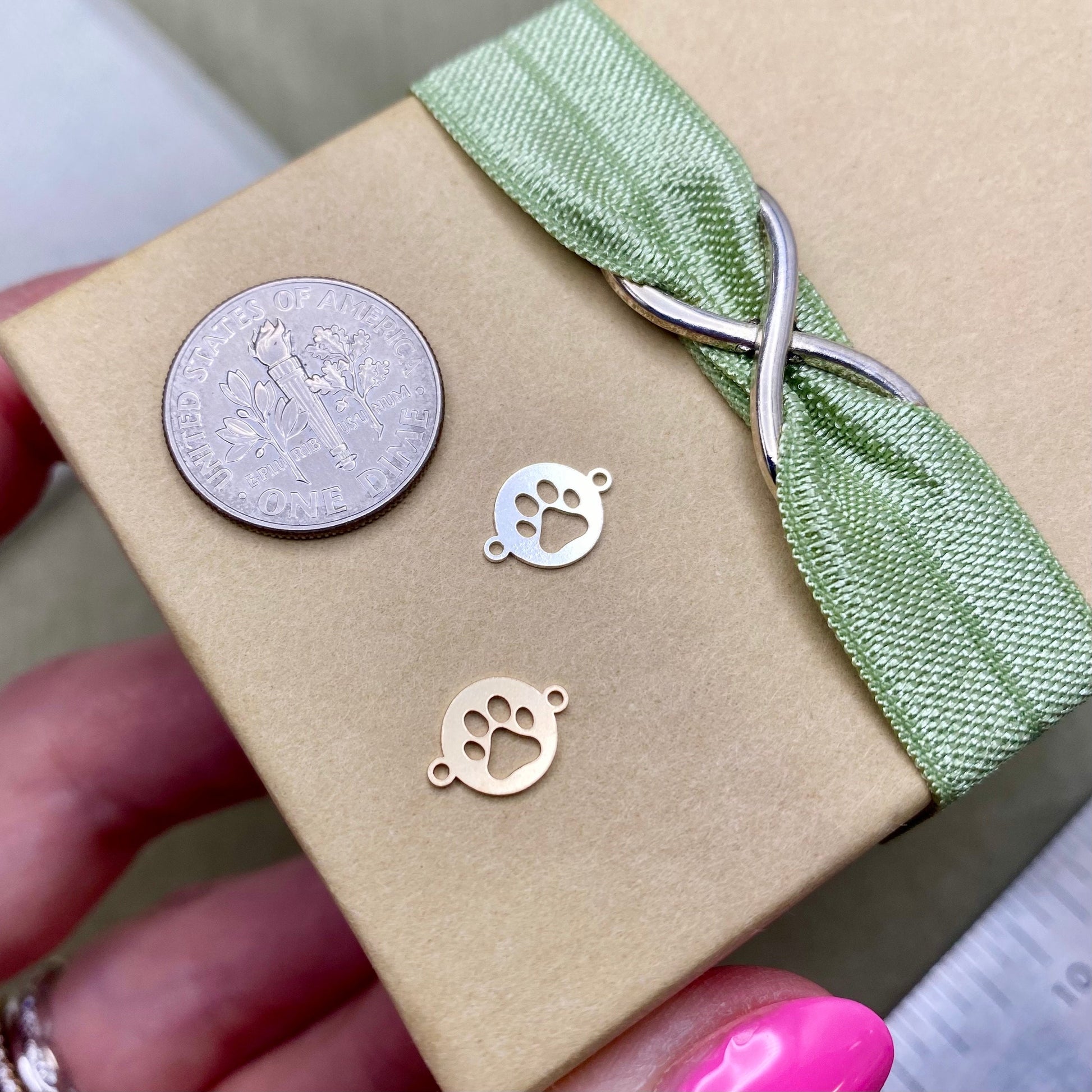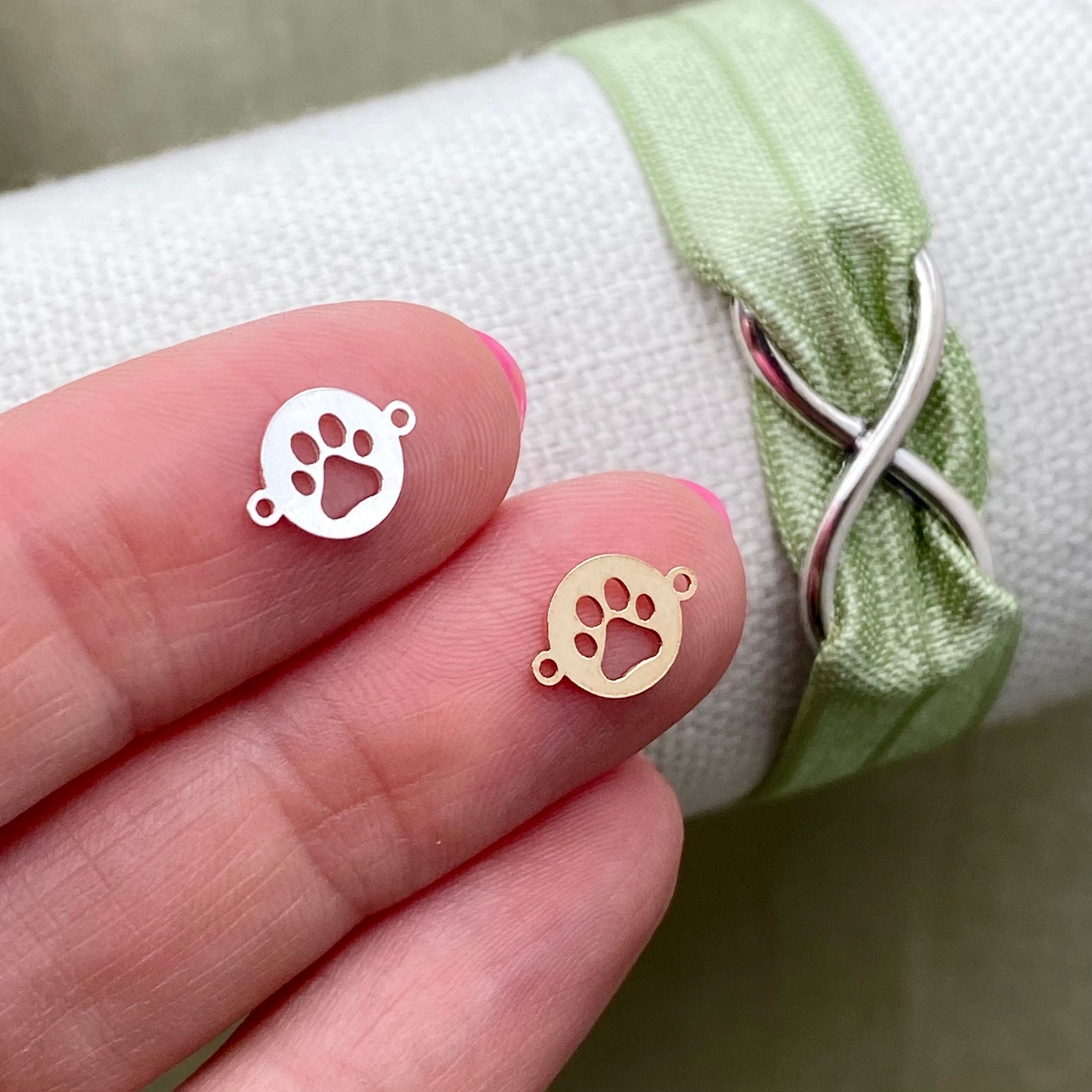 These Paw Print links are the perfect size for using as a connector for permanent jewelry chains.