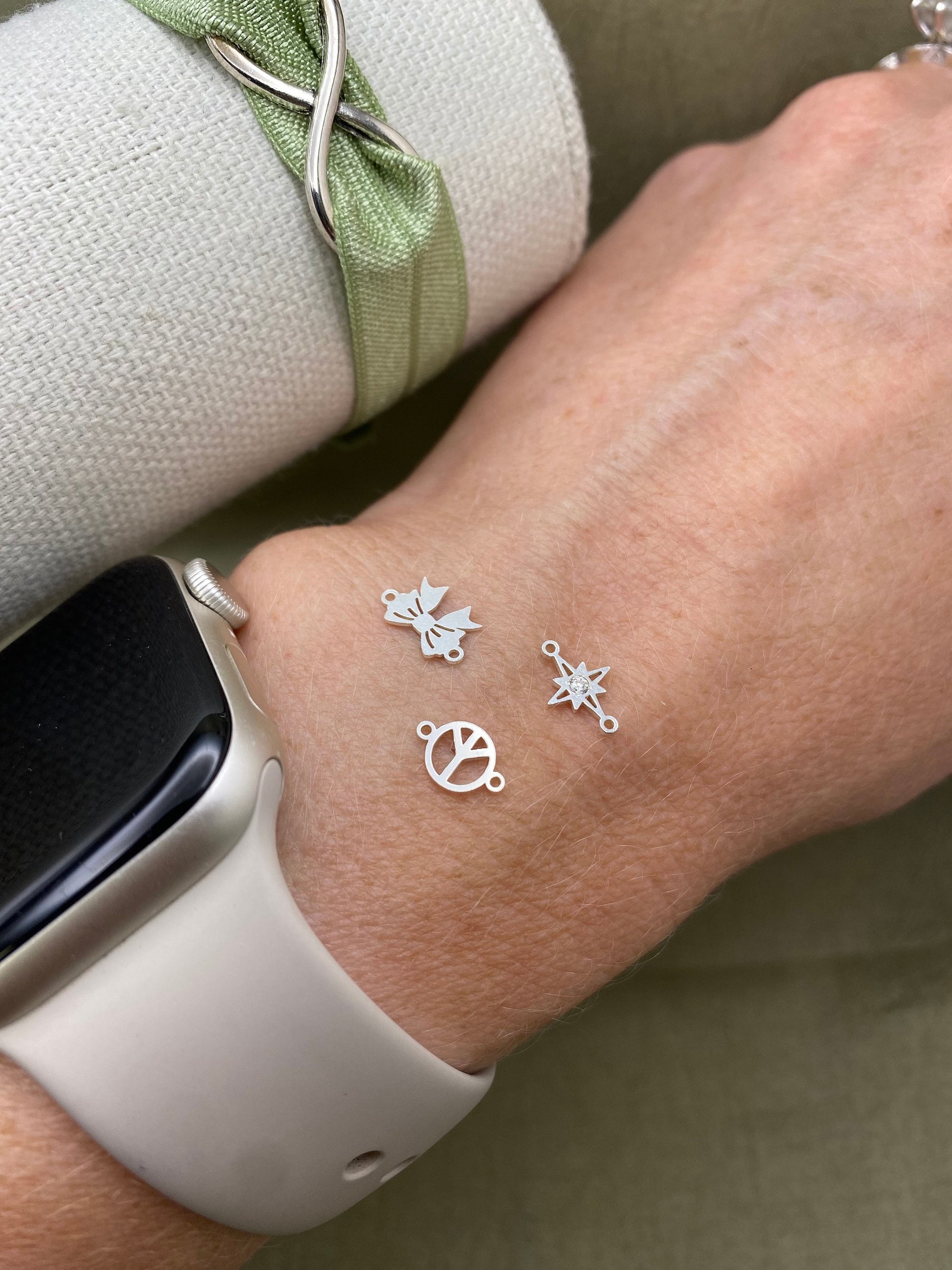 These Peace Sign links are the perfect size for using as a connector for permanent jewelry chains.