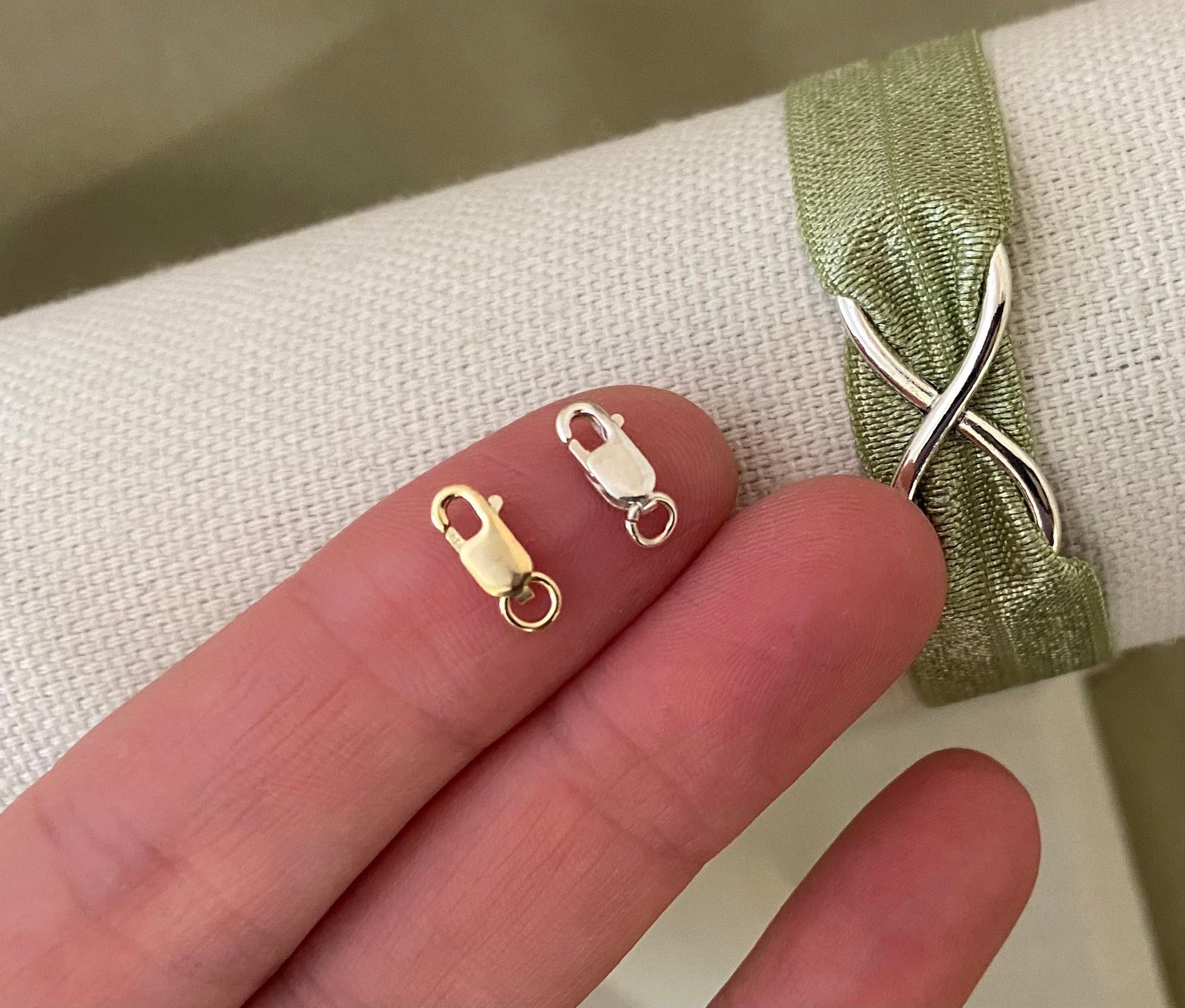 These lobster clasps are the perfect size for the delicate chains used in permanent jewelry.