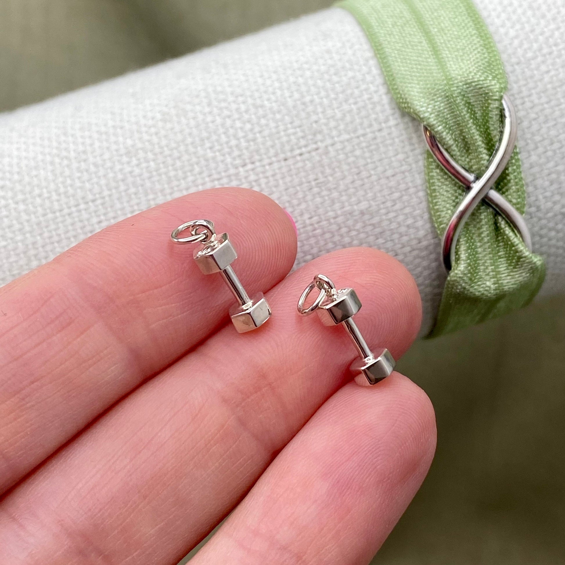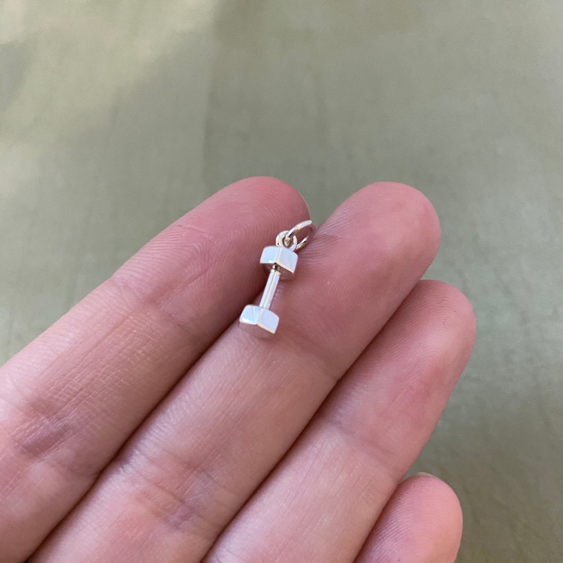 Tiny Perfect Little Sterling Silver Dumbbell Weight Charm