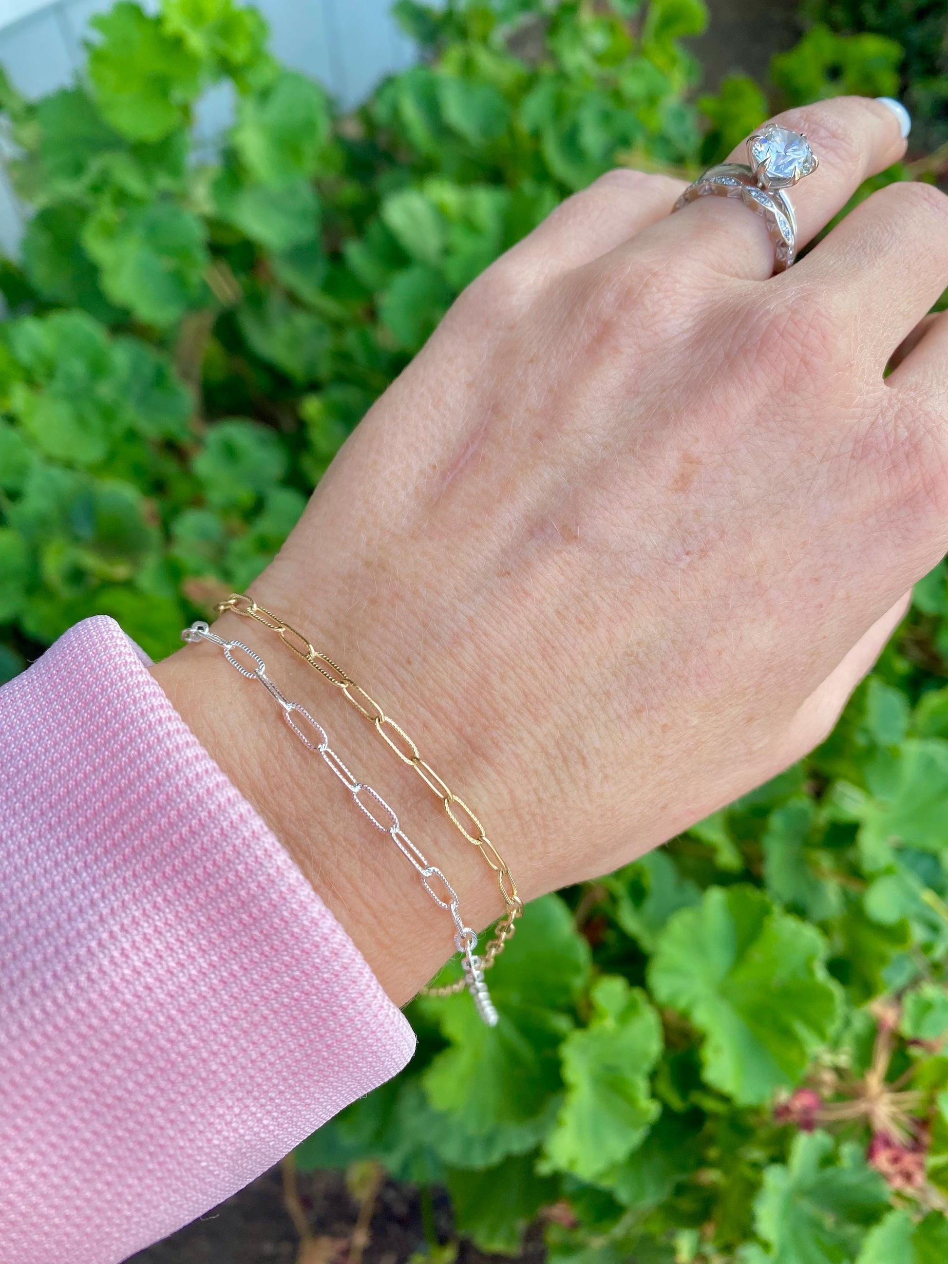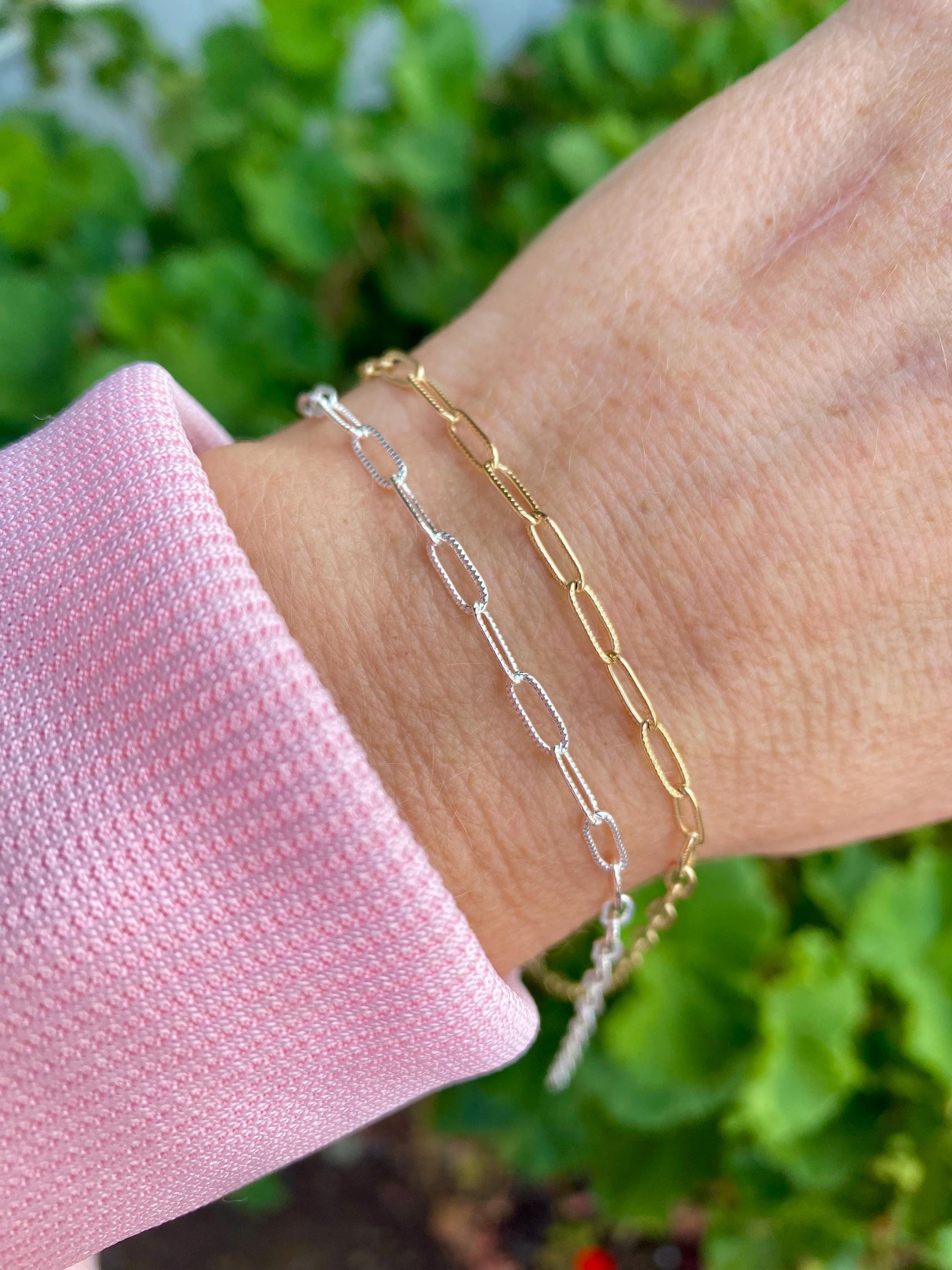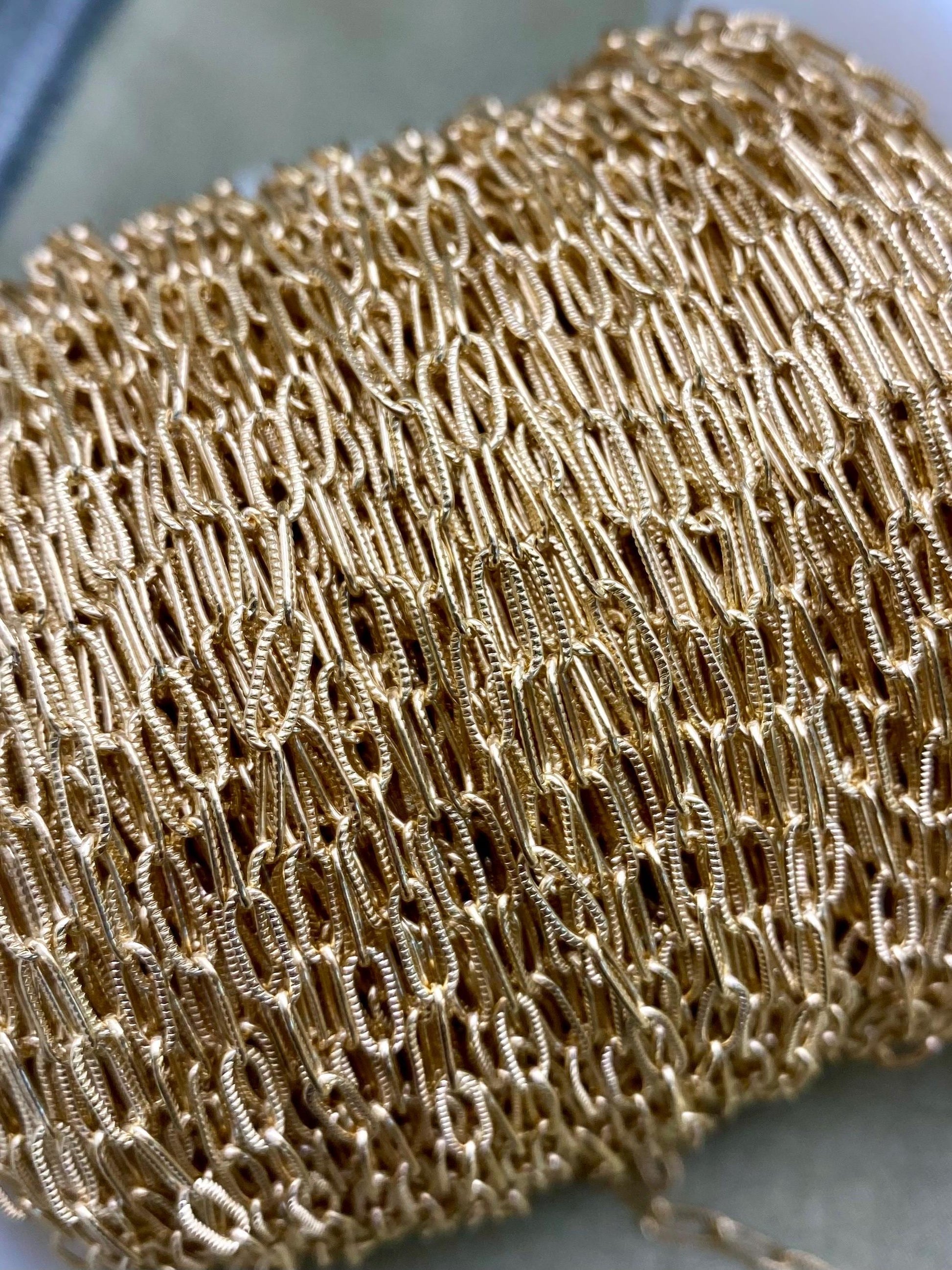 Textured Paperclip Chain or sometimes called Patterned Paperclip Chain in 925 Sterling Silver or 14kt Gold Filled.
