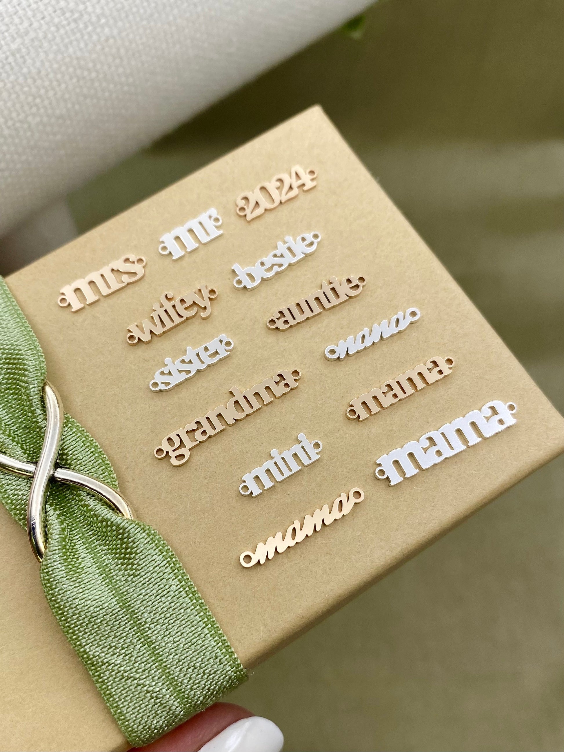 These word links are the perfect size for using as a connector for permanent jewelry chains.